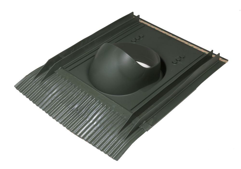 UNIVERSALпроходной элемент для монтажа труб и вентиляторов диаметром 110 –160 мм и антенного ворота на кровле из всех видов цементно-песчаной и керамической черепицы. Монтируется на 1-, 2-волновой и гладкой черепице.